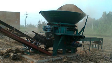 其主要是靠沖擊能來完成破碎生物作業(yè)的。錘式樹墩破碎機(jī)工作時(shí),電機(jī)帶動(dòng)轉(zhuǎn)子作高速旋轉(zhuǎn),生物均勻的進(jìn)入樹墩破碎機(jī)腔中,高速回轉(zhuǎn)的錘頭沖擊、剪切撕裂生物致生物被破碎,同時(shí)生物自身的重力作用使生物從高速旋轉(zhuǎn)的錘頭沖向架體內(nèi)擋板、篩條,在轉(zhuǎn)子下部,設(shè)有篩板、粉碎生物中小于篩孔尺寸的粒級(jí) 通過篩板排出,大于篩孔尺寸的生物阻留在篩板上繼續(xù)受到錘子的打擊和研磨。
