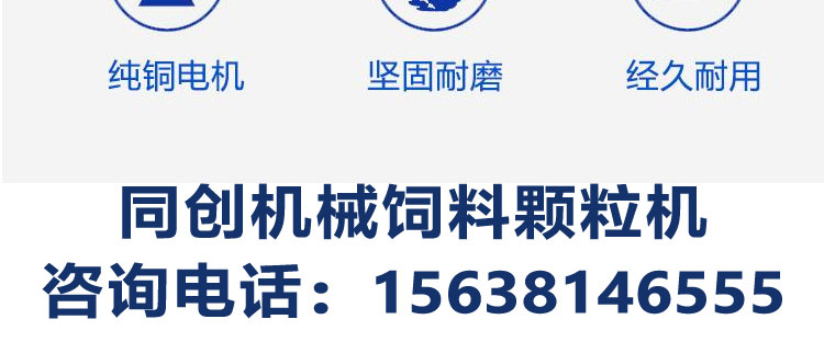 2、玉米不需要粉粹可直接加入,該機(jī)加工的顆粒狀飼料表面光潔,硬度適中,在加工過程中溫升低并能較好的保持原料內(nèi)部各營養(yǎng)成分。
